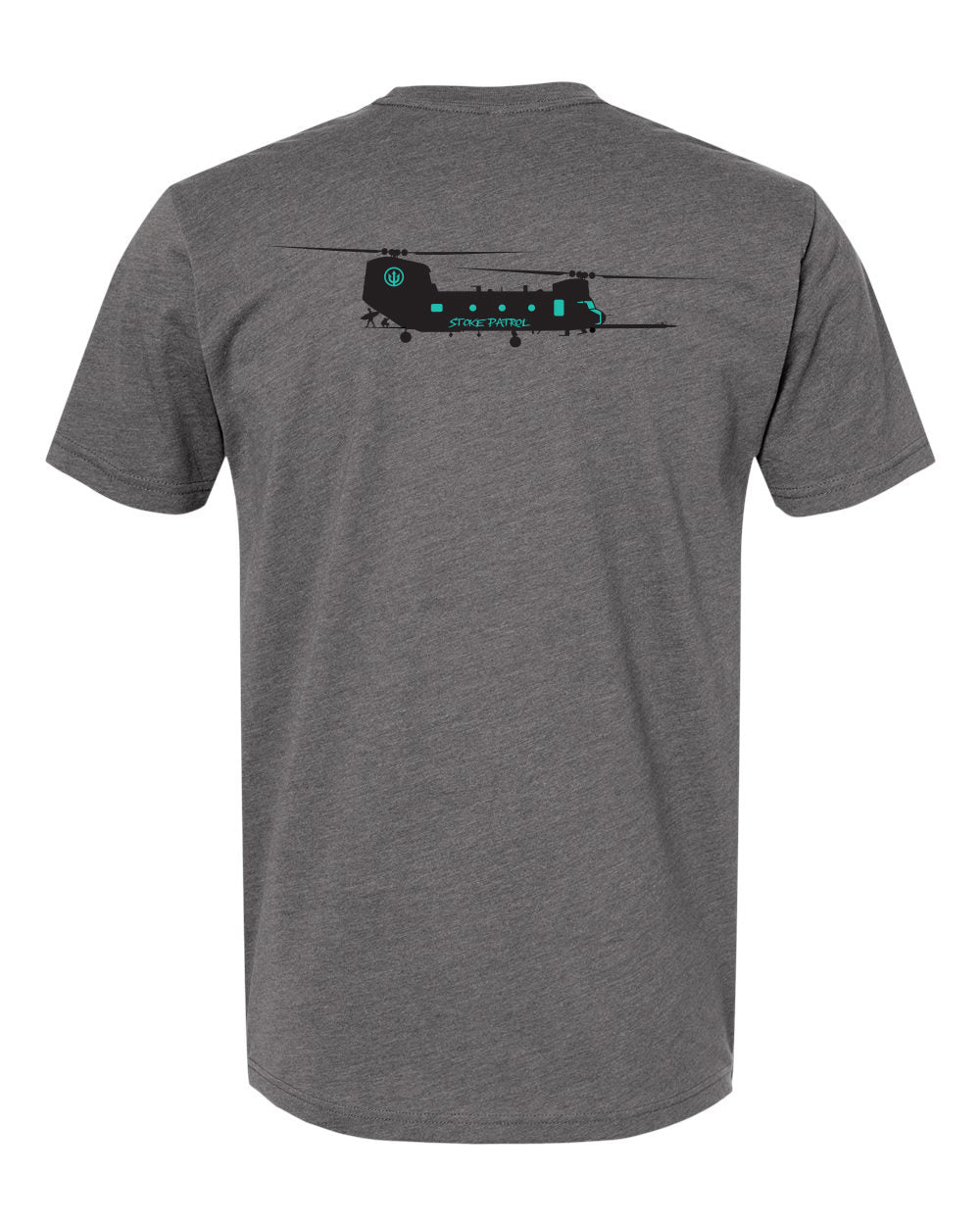 The "One More Wave Heavy Metal Stoke Patrol" T-shirt in a new 'heavy metal' color features a bold, metallic hue reminiscent of molten steel, with intricate, edgy graphics that pay homage to the power and intensity of heavy metal music. Our redesigned image on the back pops on this new t-shirt!