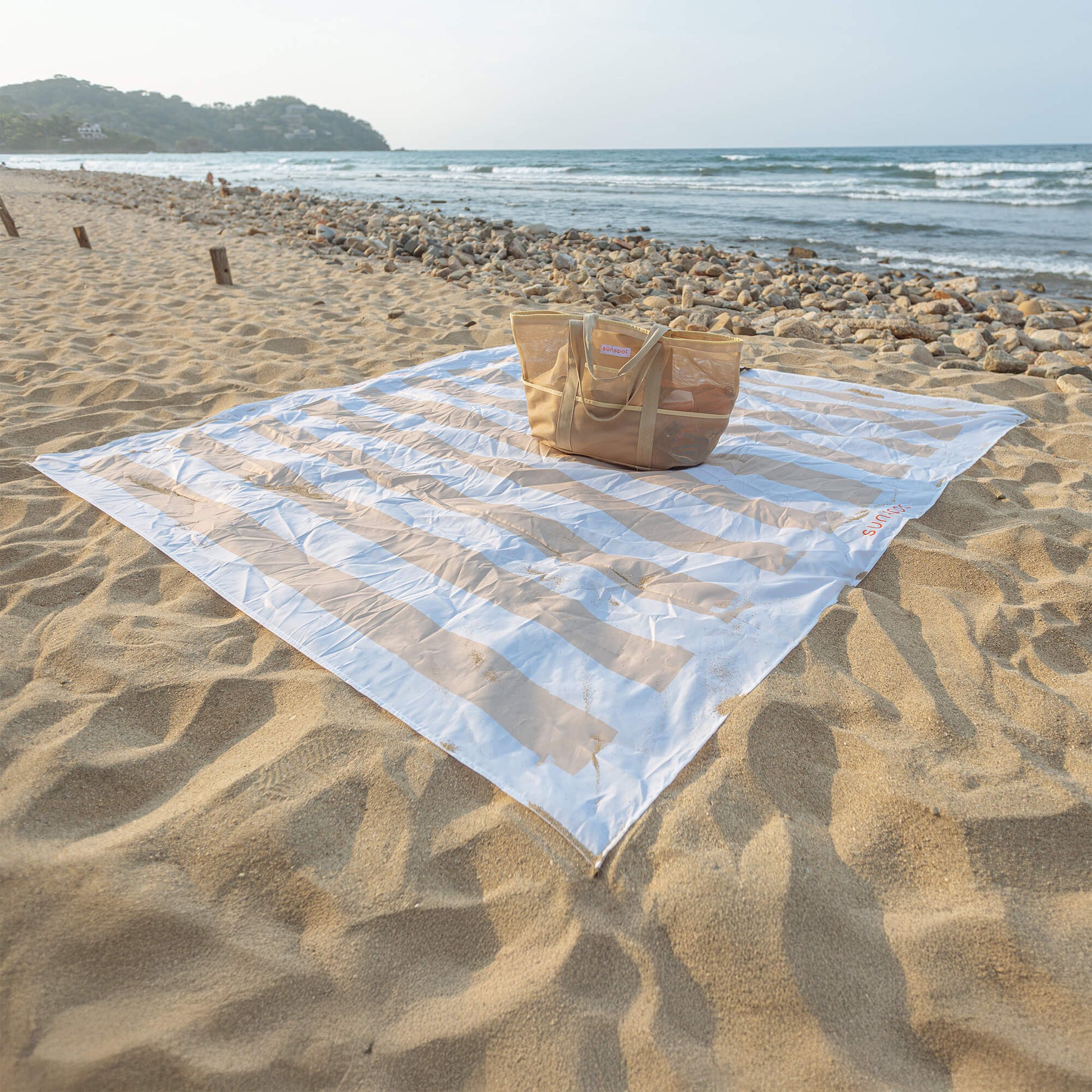 Stay sand-free and organized with this lightweight mesh beach bag. At 26" x 15" x 8", it’s roomy enough for all your gear and comes with a built-in 7ft x 6.5ft pull-out beach blanket. Includes 4 grass stakes to keep your blanket secure on grass
