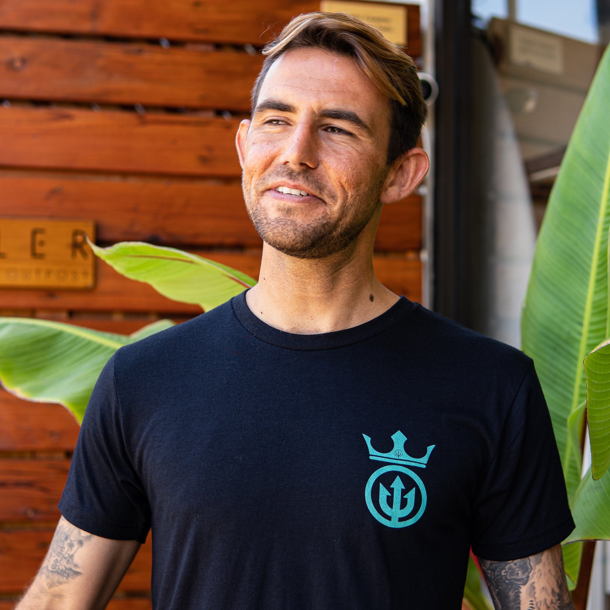 The earth shaking, wave making, grand daddy of the sea is back in black & teal with our new Poseidon ultra soft tri-blend shirt. Sporting a tri-point teal crown with waves rolling through his beard, Poseidon’s eyes, and the shirt itself, are as black as the belly of the Pacific on a moonless night.